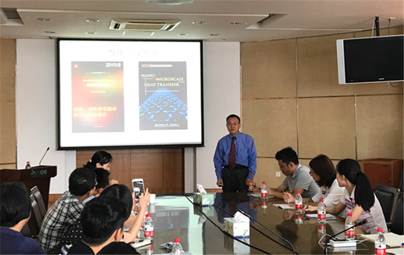 上午,張卓敏教授作了題為“Near-Field Thermal Radiation for Energy Conversion”的報(bào)告。報(bào)告中,他通過(guò)對(duì)遠(yuǎn)場(chǎng)熱輻射和近場(chǎng)熱輻射的模型展示和對(duì)比,使參會(huì)人員直觀地認(rèn)識(shí)到近場(chǎng)熱輻射能量轉(zhuǎn)換的優(yōu)勢(shì)。闡述了近場(chǎng)熱輻射能量轉(zhuǎn)換在熱光伏裝置、近場(chǎng)熱輻射能量發(fā)電和電致發(fā)光制冷的原理,通過(guò)仿真模擬以及實(shí)驗(yàn)手段展示了當(dāng)溫度不同的兩物體間距離逐漸減小至幾百納米時(shí),近場(chǎng)熱輻射能量密度會(huì)發(fā)生顯著提高,并大大提高能量轉(zhuǎn)換效率。最后,張卓敏教授對(duì)近場(chǎng)熱輻射能量轉(zhuǎn)換的未來(lái)應(yīng)用前景做了展望。報(bào)告會(huì)氣氛熱烈,與會(huì)人員與張卓敏教授就感興趣問(wèn)題展開(kāi)了熱烈的討論。