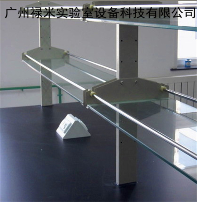 試劑架層板:12MM磨紗玻璃,四周車邊處理,光滑,不傷手,配玻璃托板及鋼板折彎掛鉤,可根據(jù)舒適要求自由調(diào)整高度,邊緣配θ12MM不銹鋼管,以防止試劑瓶跌落。