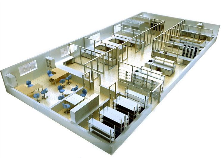 分區(qū):A、1000級(jí)實(shí)驗(yàn)室2間;B、100級(jí)實(shí)驗(yàn)室1間