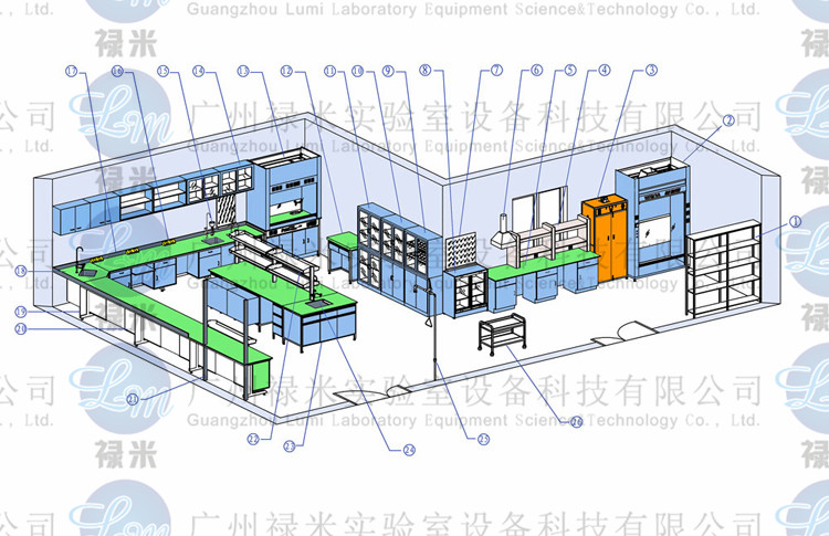 實驗室家具包括通風柜、中央臺、邊臺、試劑柜、儀器柜、更衣柜、實驗柜、藥品柜、儀器臺、天平臺、排氣罩等。生產(chǎn)制作時所用的面材具備的物理性能要好,且耐腐、易清洗等特性,家具結構在設計的過程中不能忽略人體工效學及安全操作。