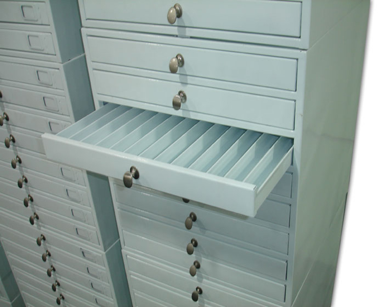 柜體采用1.0mm寶鋼冷軋鋼板。抽屜自動歸位功能,每套4組合,每組合5個抽屜,共20個抽屜,約放蠟塊1.5~1.6萬塊。柜體經(jīng)防銹處理,靜電噴塑工藝,整體美觀大方。最新利用槽式滑輪,起始點(diǎn)配高強(qiáng)度滑輪,抽屜推拉順暢,同時防止抽屜拉出來過長造成意外跌落。另配高彈性減震墊,可使抽屜關(guān)閉時減輕與柜體的碰撞,同時使噪音減少至最低限度。實(shí)驗(yàn)室家具